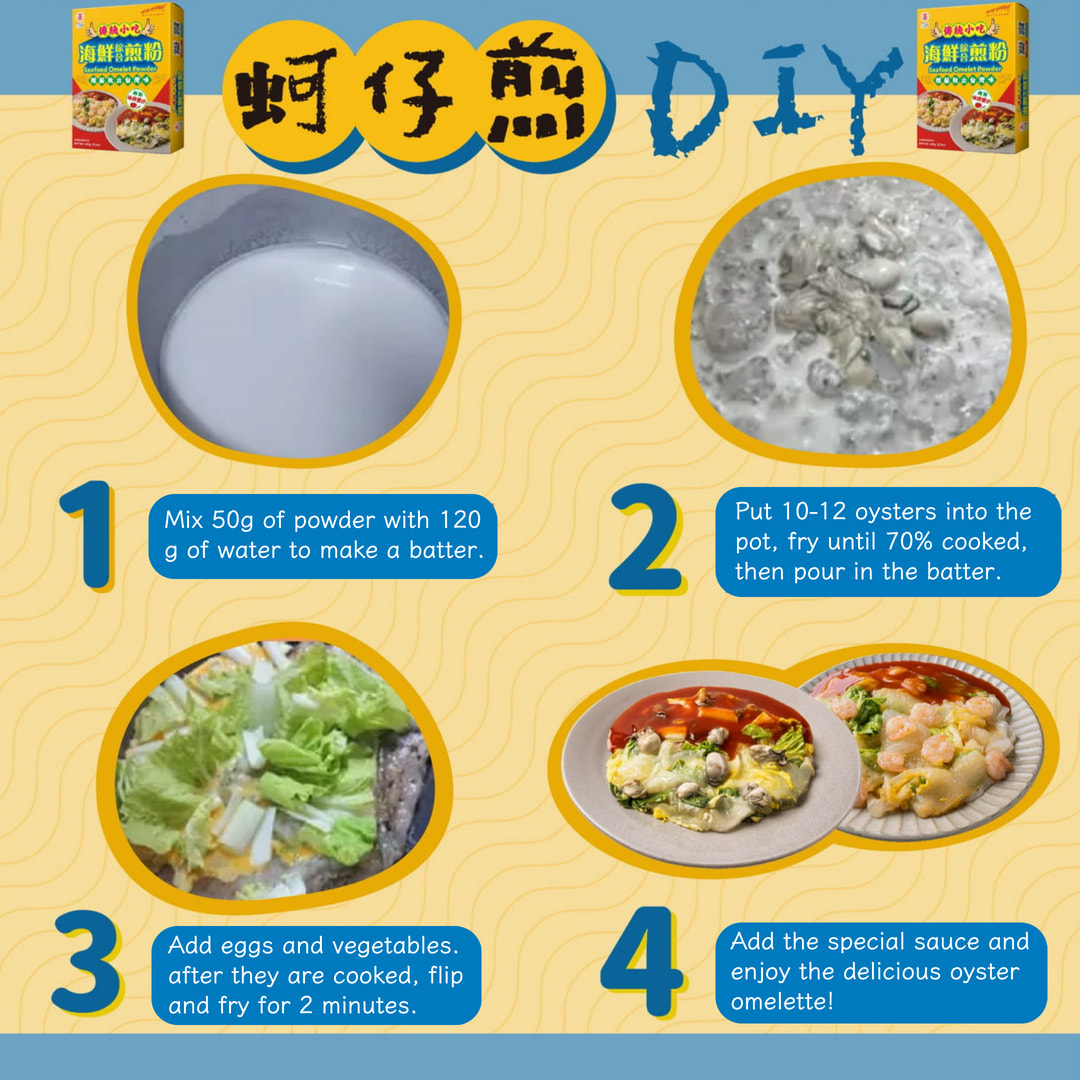 - Open the sauce packet and drizzle it over the oyster pancake.